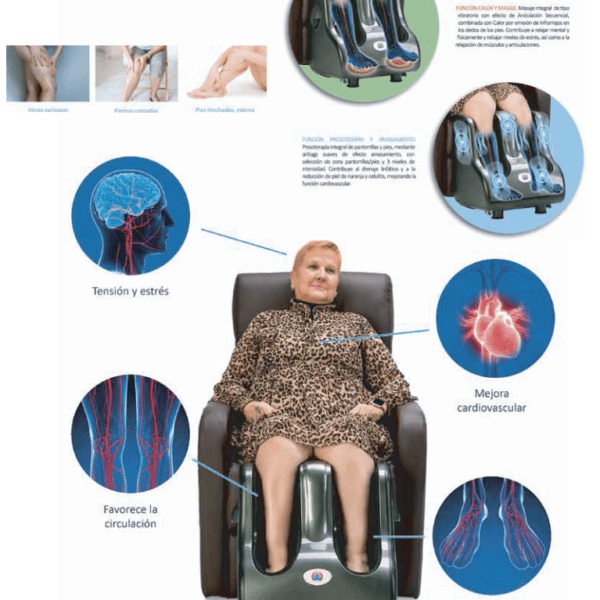 Disfruta de la nueva generación de butacones para el descanso con 8 motores de masaje repartidos por su estructura y una zona de calos lumbar. Además, cuenta con Sistema especial Levantapersonas.